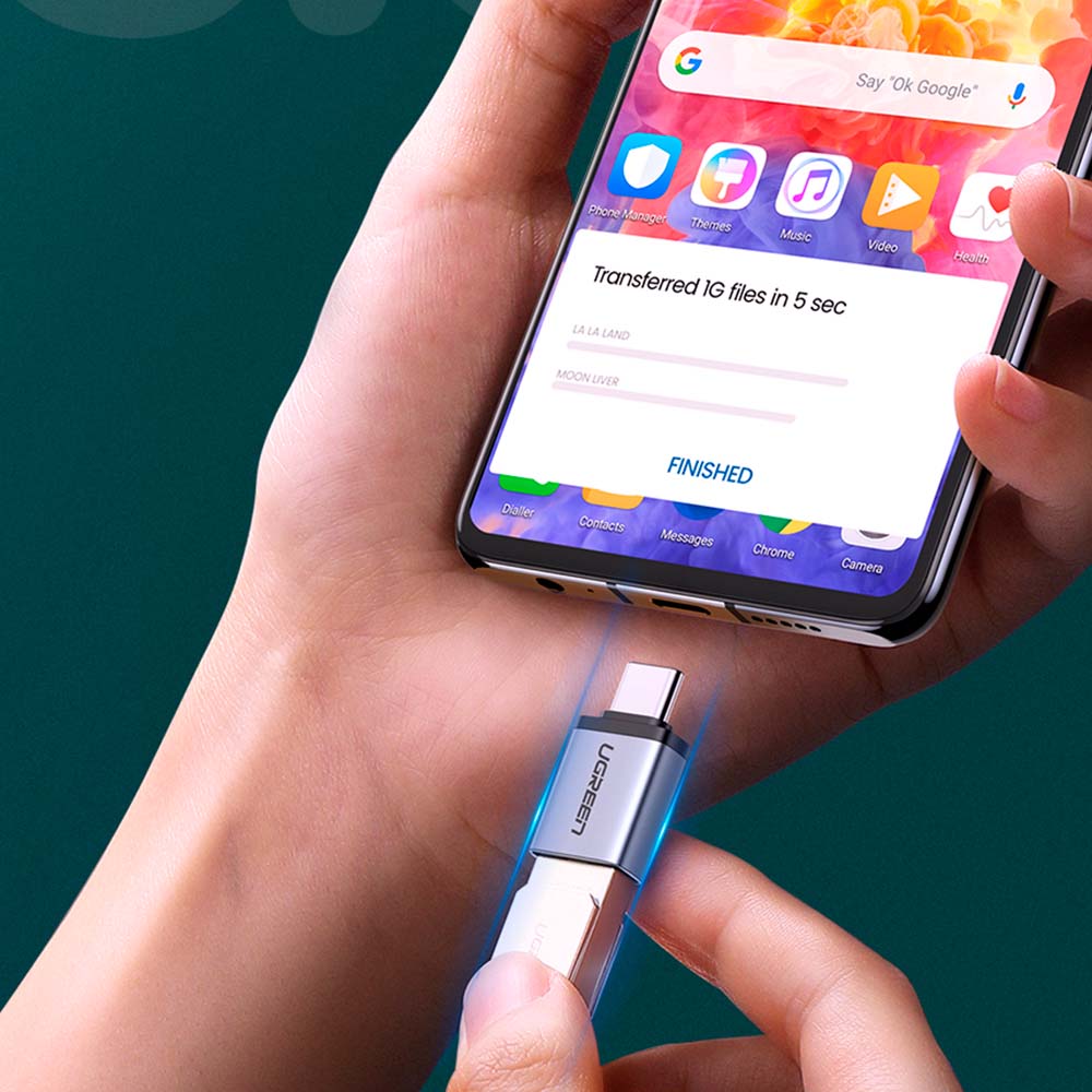 El adaptador USB-C de UGREEN le permite disfrutar de películas, música o verificar archivos en sus teléfonos o tabletas tipo c desde su unidad flash o memoria USB directamente, sin necesidad de preocuparse más por la limitación de almacenamiento.