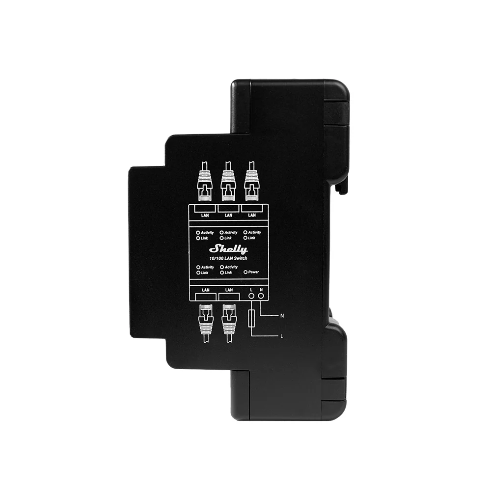 Shelly LAN Switch proporciona una solución sencilla para una conexión confiable sin la necesidad de modificaciones eléctricas extensas. ¡Ahora solo necesitas 1 cable LAN dentro de tu caja de interruptores para conectar tus dispositivos! Su factor de forma compartido con los dispositivos de la línea Shelly Pro garantiza que encaje perfectamente en una caja de disyuntores ocupada por Shelly, lo que simplifica la instalación y mantiene una configuración organizada.