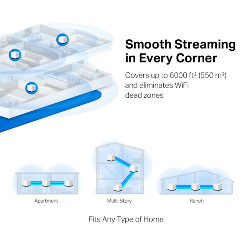 La cobertura de los router normales es limitada y deja puntos sin señal WiFi en muchos rincones de la casa, Halo H50G es la solución para llevar una señal Wi-Fi rápida y estable a toda la casa hasta 550 m2 y eliminando las zonas sin WiFi.